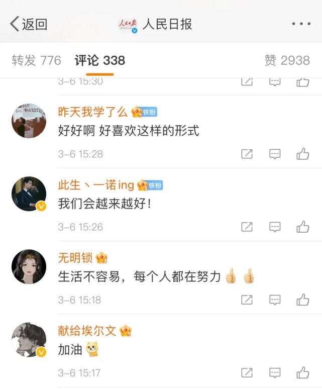 有不少网友在政府官方账号以及官方媒体下,对此评论留言,“好喜欢这样的形式”、“我们会越来越好的”、“生活不容易,每个人都在努力”……该条宣传片也得到了很多网友转发。