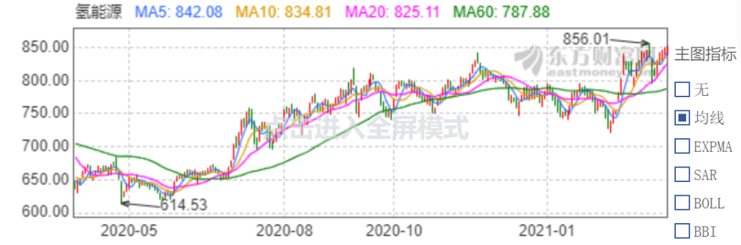 图1 A股市场氢能源概念行情指数 来源:东方财富网