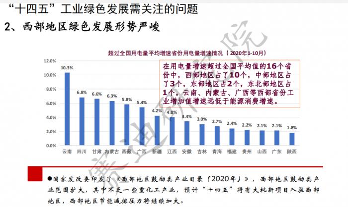 报告指出,“十四五”工业绿色发展面临的第二个问题是:西部地区绿色发展形势严峻。