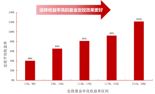 选择什么样的基金进行定投,其实对你的定投收益率有着决定性的影响。小爱做了组实验,选择波动率相似,收益率不同的基金,发现收益率越高定投效果越好,而高收益也往往伴随着高波动。所以,高收益高波动的基金定投效果最好。