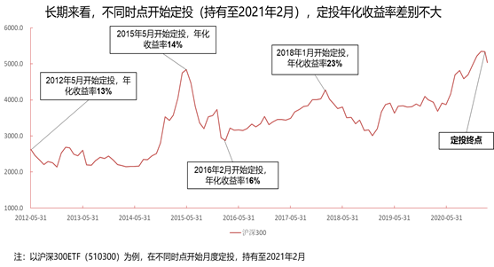 看到这,是不是有些心动呢?是否想选择一个黄道吉日开始定投呢?NO!长期来看,定投的起点并不那么重要,适时止盈才是最重要的。