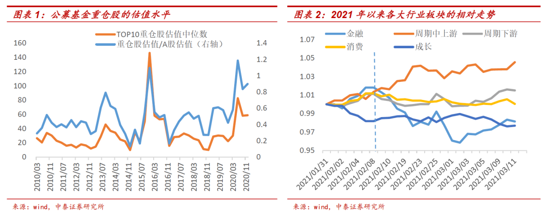 2020年受新冠疫情影响,一方面全球央行极度宽松,另一方面在疫情的不确定性下市场避险情绪明显,资金涌入科技和消费龙头股,形成了“抱团”现象。2020年底,在公募基金募集火爆带来的正反馈效应下,A股的“抱团”程度到达历史高位。随着疫苗接种加速和欧美疫情形势的好转,市场避险情绪明显下降且对经济复苏的预期大幅提升,2021年春节前后,“抱团”现象开始松动,金融地产、周期板块迎来估值修复行情。