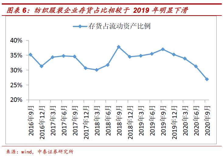 虽然2020年受新冠疫情影响,但除了原油等直接受防疫封锁影响的品种,其余大多数行业也没有出现明显的累库存现象。以纺织服装行业为例,A股纺服行业上市公司的存货占流动资产的比例在2020年明显下降了一个台阶。 这一方面是因为疫情可能对供给也产生了影响,生产企业面对不确定性也可能收缩生产规模,另一方面在极度宽松的货币政策以及欧美政府直接发钱的救助政策下居民的消费相对强劲。