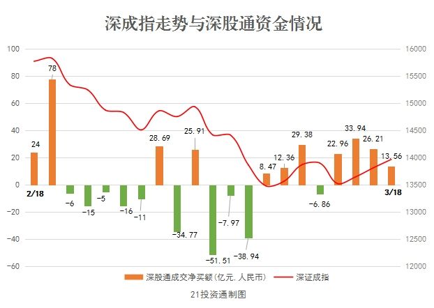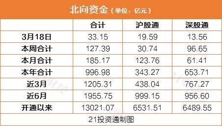 据21投资通(微信号ID:touzit21)智能监测,北向资金连续8日净流入,合计净买入33.15亿元,其中,沪股通净买入19.59亿元,深股通净买入13.56亿元。
