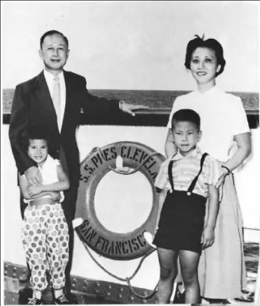 △钱学森与家人在“克里夫兰总统号”船上的合影