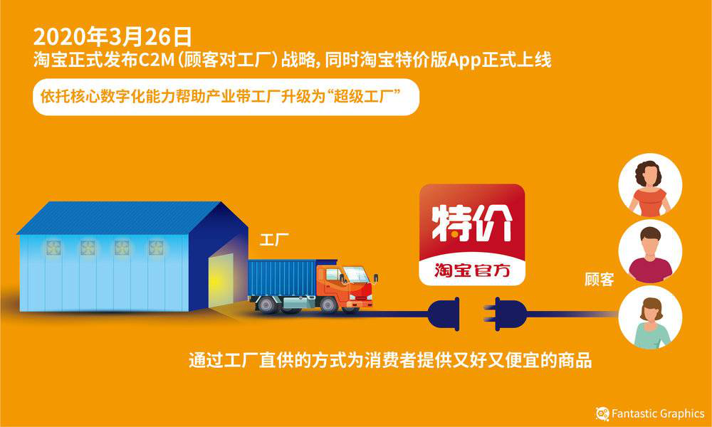 虽然阿里内部布局C2M已久,但是直到2019年底,阿里在淘宝事业群下专门成立C2M事业群,才正式把C2M上升到公司战略的层面。2020年10月,阿里又在淘宝特价版推出主打C2M模式的“1元更香节”活动。