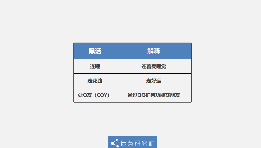 还有一些黑话是 00后们在玩 QQ 的过程中逐渐发明使用的: