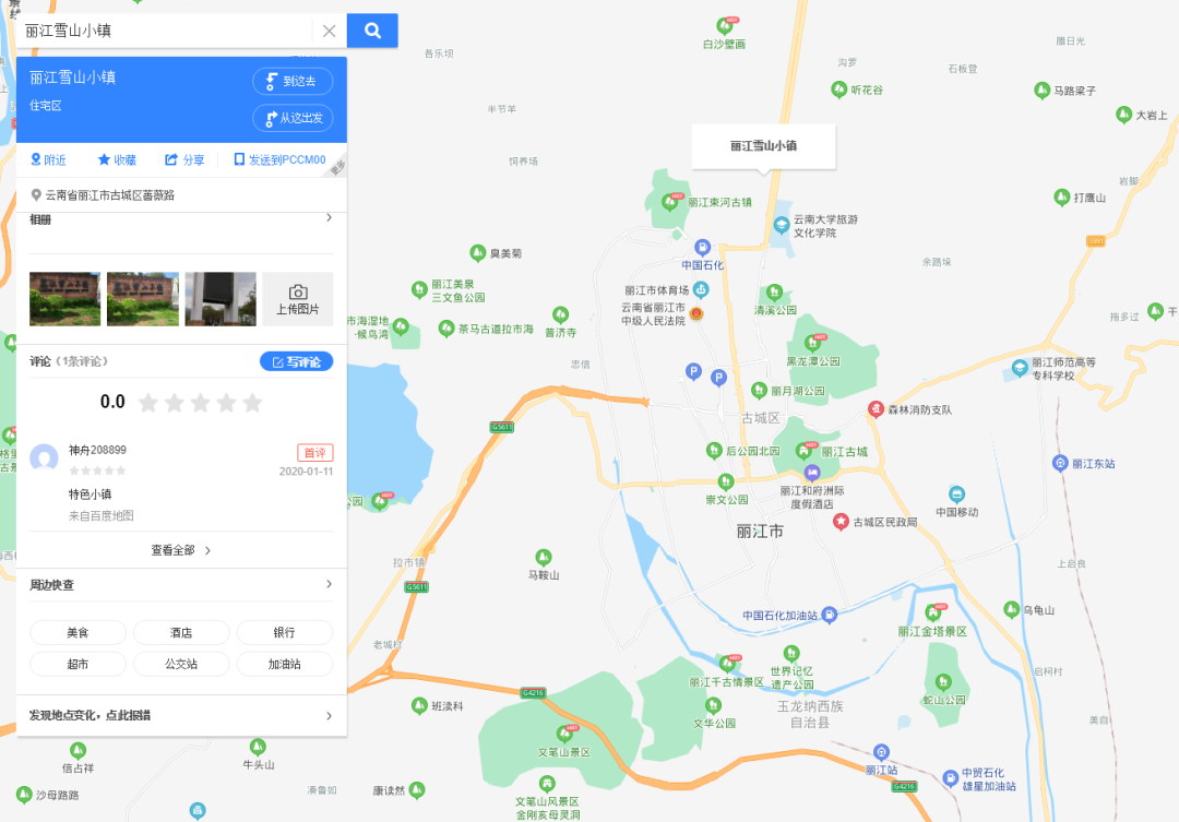 从地图上可以看到,这个雪山小镇既不在人口相对密集的丽江市区,周边也没有什么知名的景区。这个选址,不知道李亚鹏当时是怎么考虑的。