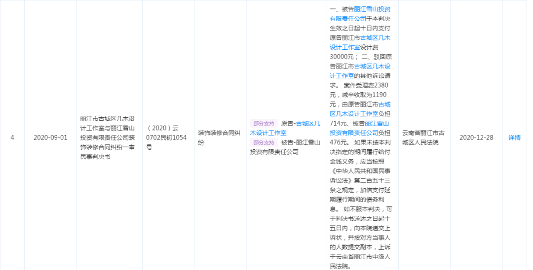 而这些地产项目大多不了了之,李亚鹏的周边风险也越来越多。天眼查显示,李亚鹏的周边风险高达52条,丽江雪山投资的周边风险更是高达790条,随便点开一条查看,发现丽江雪山投资甚至还欠一个工作室30000块设计费没给,被人告上法庭,这样的案件比比皆是。