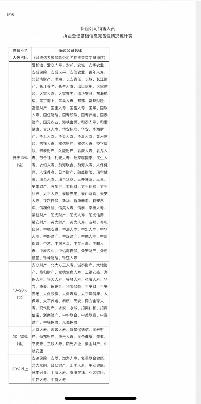 3.对信息缺失销售人员占比超过30%的14家保险公司,责令其中介渠道业务管理责任人到银保监会中介部进行监管谈话,并于2021年4月20日前报送整改报告。