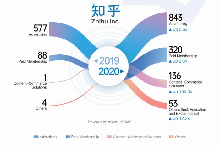 多年来,知乎不断探索并开辟新的、多元化盈利增长点。2019年上半年知乎推出付费盐选会员,为付费会员提供付费内容库等无限访问权限,是第一个启动付费会员计划的问答式在线社区;2020年初推出首创性商业内容解决方案,上线不到一年贡献收入1.36亿。商业内容解决方案为商家和品牌提供有效的基于内容的线上营销解决方案,将优质的商业内容和营销工具无缝集成到知乎内容社区中,从而提高营销效率,让用户从有价值的商业信息中获益。