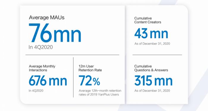 高质量内容使得知乎以低成本迅速扩展用户群体,同时保持较高的用户参与度和忠诚度。2020年第四季度知乎平均月活用户数达7570万,同比增长33%。