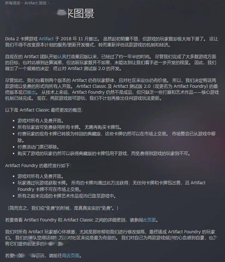 3月5日,V社正式宣布,Artifact 2.0停止后续开发,两款游戏将以免费的形式向所有人开放。至此,这款三年前曾被人们寄予厚望的《DOtA》IP衍生卡牌游戏,算是彻底倒下了。