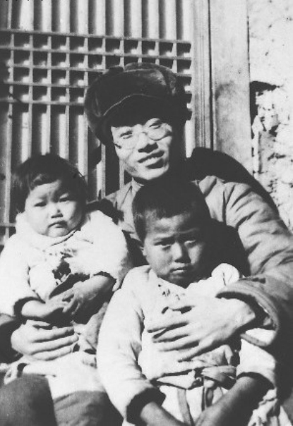 △1953年魏巍在朝鲜战场和朝鲜儿童在一起