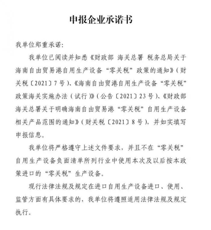 根据上述通知,海南省制定的《机制》明确了企业申报购买“零关税”自用生产设备的流程。