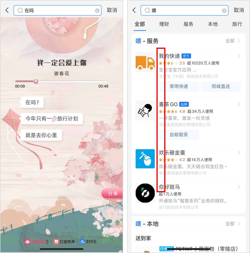 不过同样是搜服务,支付宝和微信搜索也有不少区别。