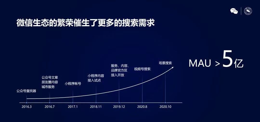 在 2021微信公开课PRO 上,微信团队宣布,微信搜一搜的月活已经超过 5 亿,用户已经逐步养成通过微信搜索的习惯。