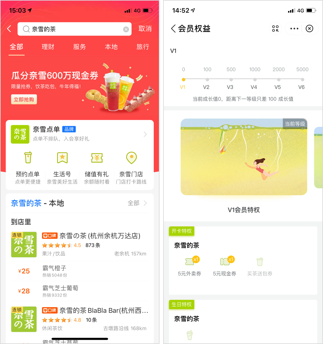 比如,奈雪的茶使用支付宝“轻会员”,让用户不用支付会员费,芝麻信用分就可以享受会员优惠,解决了“付费会员阻碍用户开卡,免费会员让会员价值减少”的会员体系难题。
