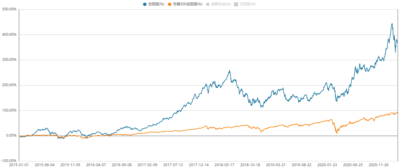 2015年1月1日以来中概股等权重指数上涨368.38%,跑赢标普500指数,相对回报率为278.32%,本周指数下跌了3.34%。