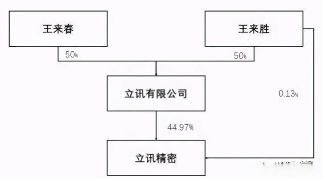 公开资料显示,立讯有限由王来胜和妹妹王来春共同持有,各自持股50%。王氏兄妹是立讯精密的实际控制人。