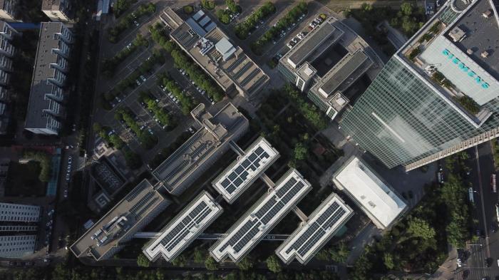 首先,对西门子相关的楼宇和厂房用能情况以及用能效率进行了系统的筛选分析,并加大了节能改造力度。西门子相当一部分的投资是用于工厂和办公楼的改造,使工厂和办公楼能够更加智能、节能,更多地接入可再生资源。在西门子北京中心屋顶,21世纪经济报道看到,西门子已铺建了大面积的光伏发电设施。
