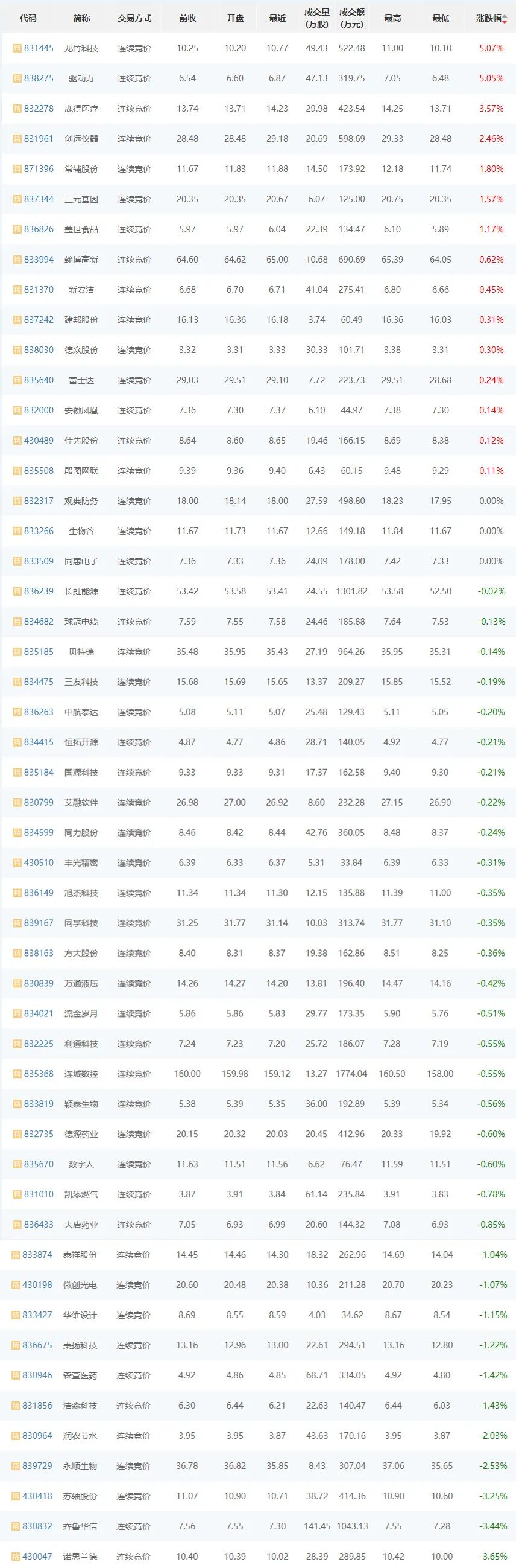 3月23日,精选层普跌,15家企业上涨,3家平盘,33家下跌。其中,龙竹科技(831445)涨幅居首,上涨5.07%;其次,驱动力(838275)上涨5.05%;诺思兰德(430047)下跌2.66%;齐鲁华信(830832)下跌3.44%居次;观点防务(832317)、生物谷(833266)等平盘。