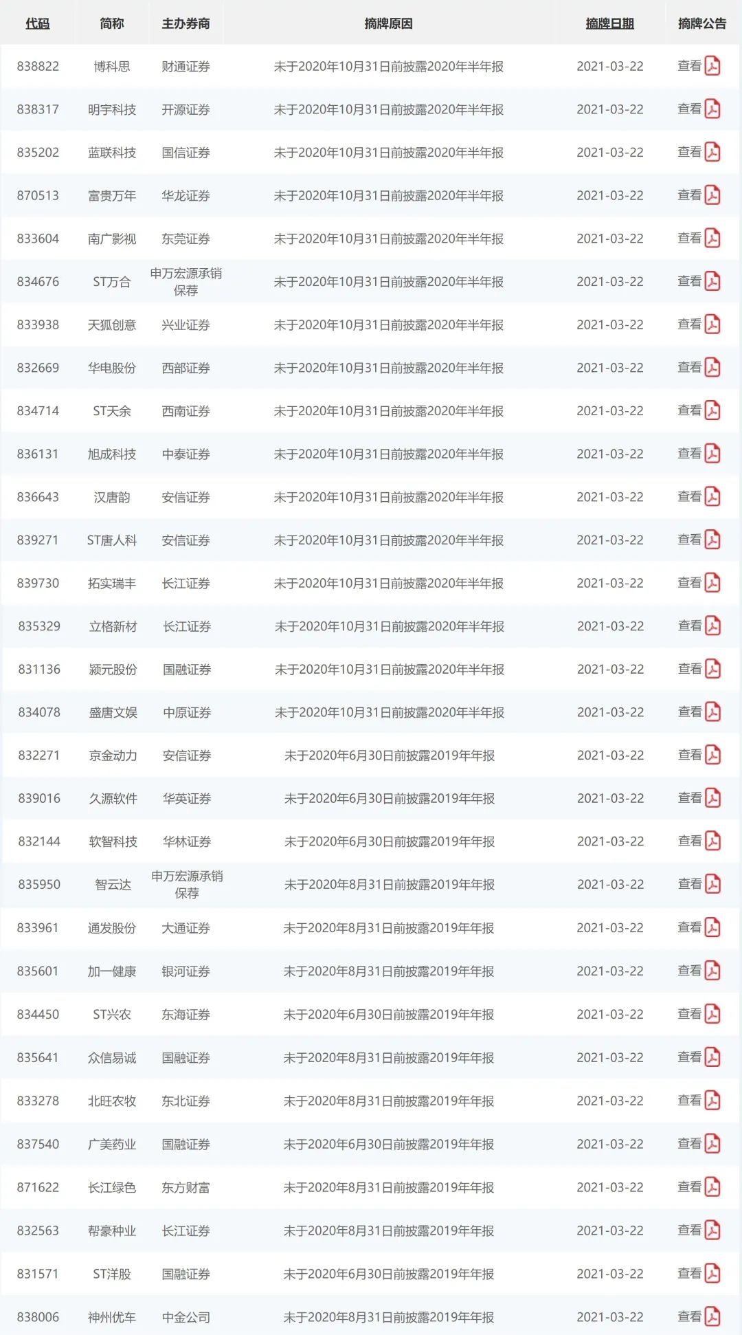 3月22日,神州优车、博科思、明宇科持、蓝联科技、富贵万年、南广影视等30家新三板公司因未能按时披露2020年半年报被全国股转公司强制终止挂牌。