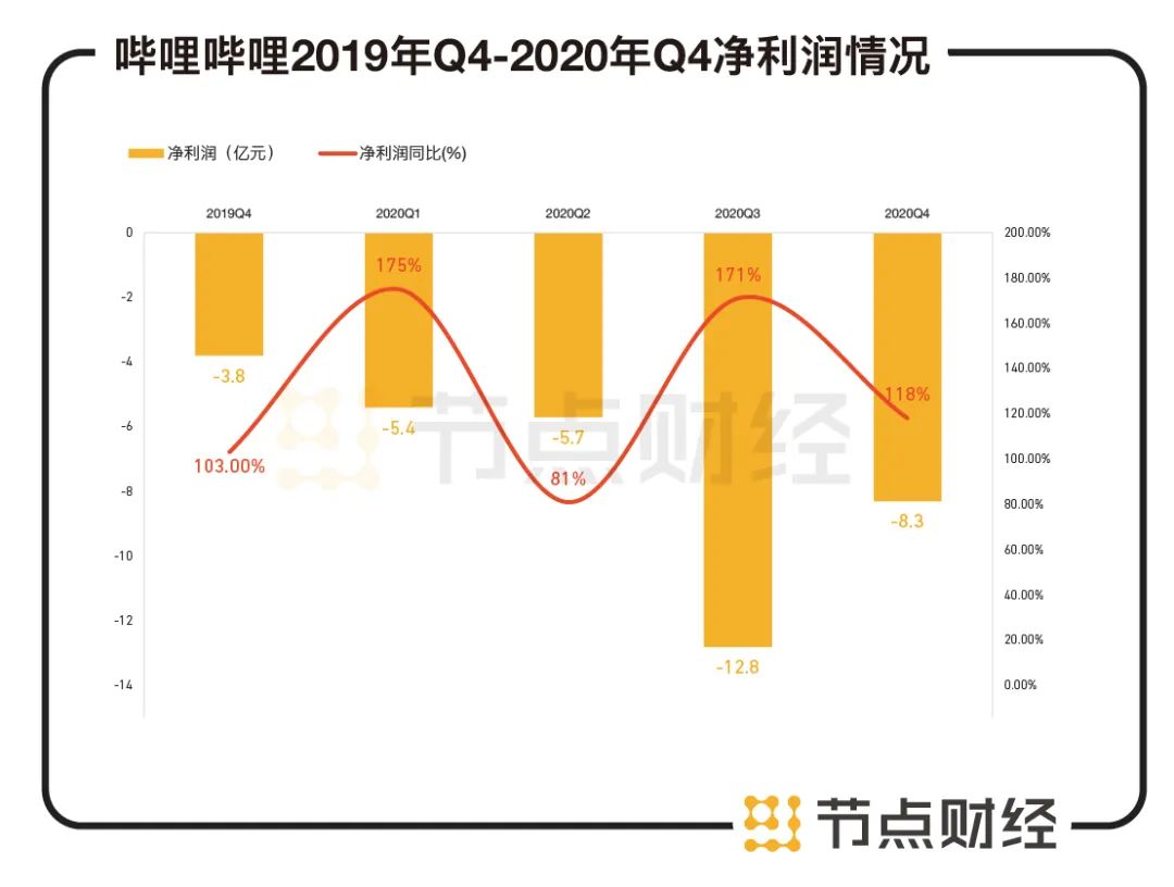但从盈利能力来看,B站的情况仍不容乐观。2020年,公司亏损高达31亿元,同比扩大138%,这一亏损金额超过2019年腾讯视频的亏损金额30亿元。