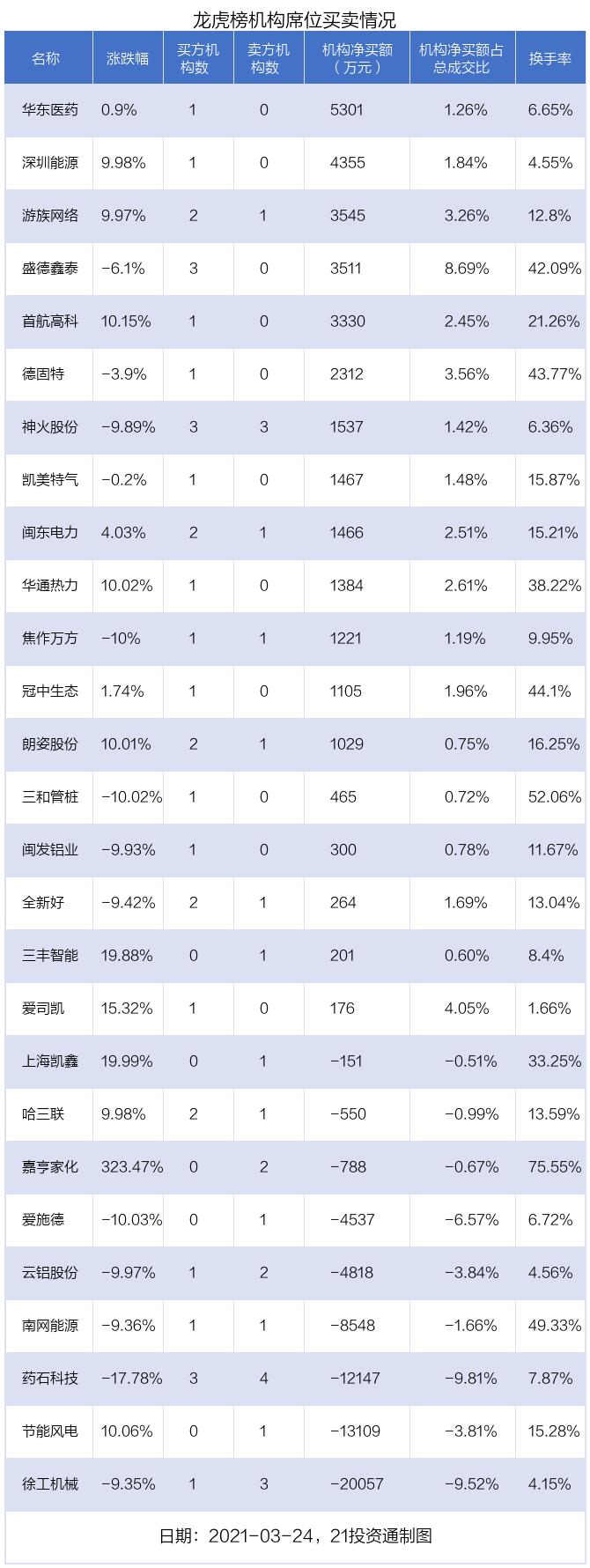 3月24日,27只个股龙虎榜出现了机构的身影,机构合计净卖出3.17亿元。具体来看,机构净买入18股,净卖出9股。