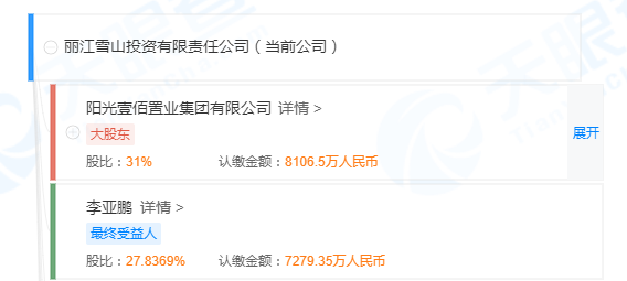 2008年公司刚成立时,李亚鹏持股90%,天眼查显示,其如今已稀释超60%股份,阳光100成了最大股东,目前持股31%,也成了丽江雪山的接盘侠。这可能是阳光100近10年吃的最大一个“瘪”。