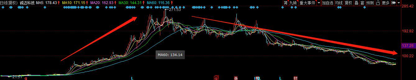 在“故事”讲完后,诚迈科技股价持续下跌。现在来看,诚迈科技股价不到70元,相距高点跌幅超74%。