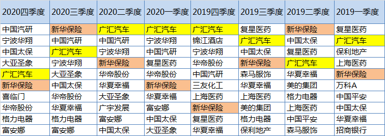 从上表可以看出,老曹真的是“守股如守寡”,白酒一概看不上,广汇汽车、新华保险则持有超过8个季度,期间广汇汽车还下跌超过30%,其它的如宁波华翔、中国汽研,也都跟这两年机构抱团的热门股毫不相干。