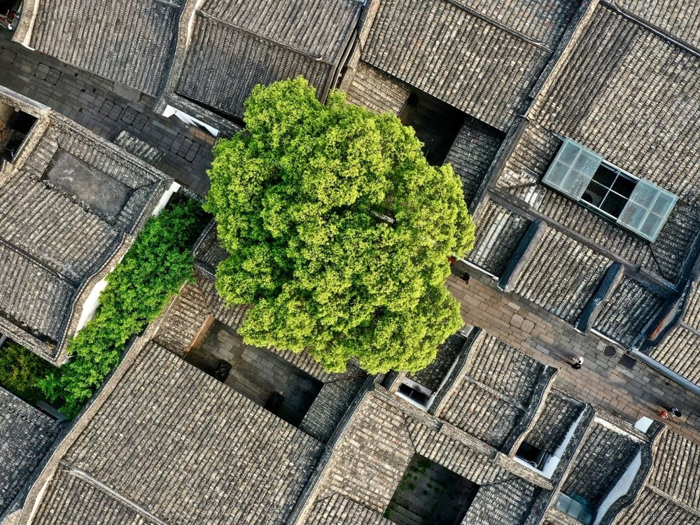 这是福州三坊七巷文化街区的古厝绿树(2021年3月17日摄,无人机照片) 新华社记者姜克红摄