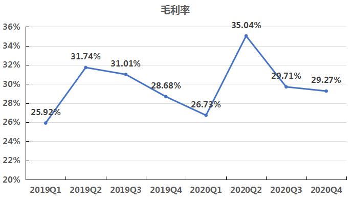 从上图可以看到,虽然收入出现大幅波动,公司2020年大多数季度的毛利率都维持在2019年以来的高水平,2020年四季度的毛利率比2019年同期还要略高。