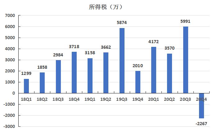 上图是公司2018年以来分季度的所得税支出。从上图可以看到,2020年四季度公司获得了2267万的所得税退税。而去年同期,所得税是支出2010万。这是公司净利润能够不跟随收入下滑的主要原因。但这也是非常态事项,从行业角度看,未来公司毛利率提升空间有限,公司的利润能够继续增长,关键因素仍在与于收入能否恢复。