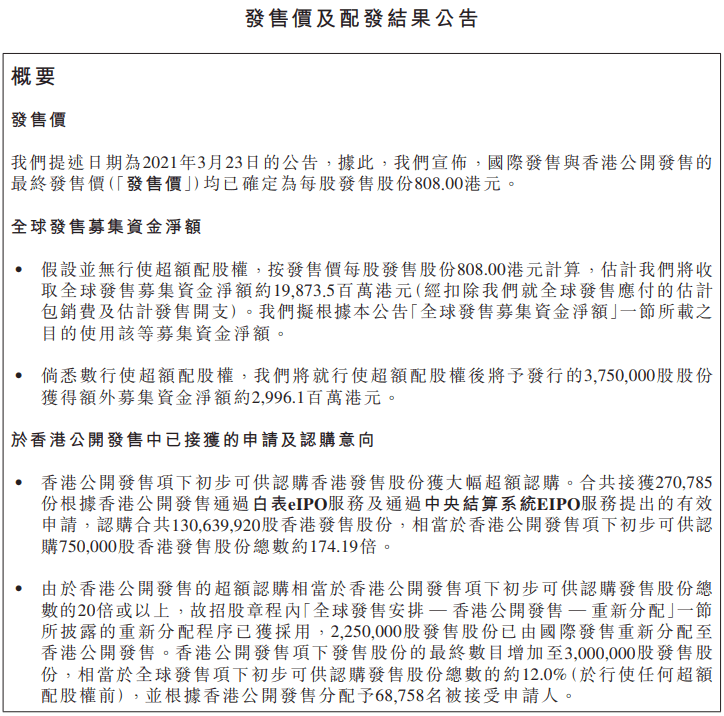 此外,国际发售获大幅超额认购,发售股份最终数目为2200万股,相当于发售股份总数的约88%。