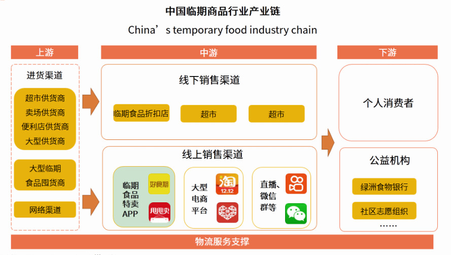 最后处于下游的普通消费者们,可以选择网络渠道购买临期食品,也可以选择去超市、专卖店购买临期食品,还能通过小程序、社群与上游的供货商建立联系直接下单,基本不愁买。