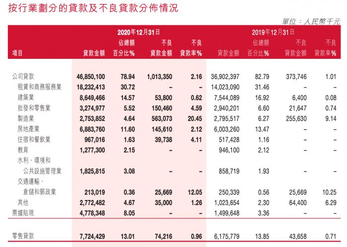 值得注意的是,截至2020年该行制造业不良贷款余额达5.63亿元,不良率为20.45%,而2019年分别为2.56亿元、9.14%。