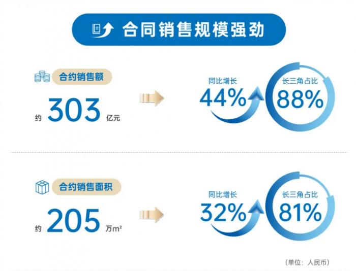 根据业绩公告,2020年大发地产合同销售额约303亿元,同比增长44%;合同销售面积约205万平方米,同比增长32%;合同销售均价14826元/平方米,同比增长9%。大发地产销售额主要来自公司一直深耕的长三角市场,以一线及优质二线城市为主。其中长三角合同销售额占比高达88%,合同销售面积占比81%。