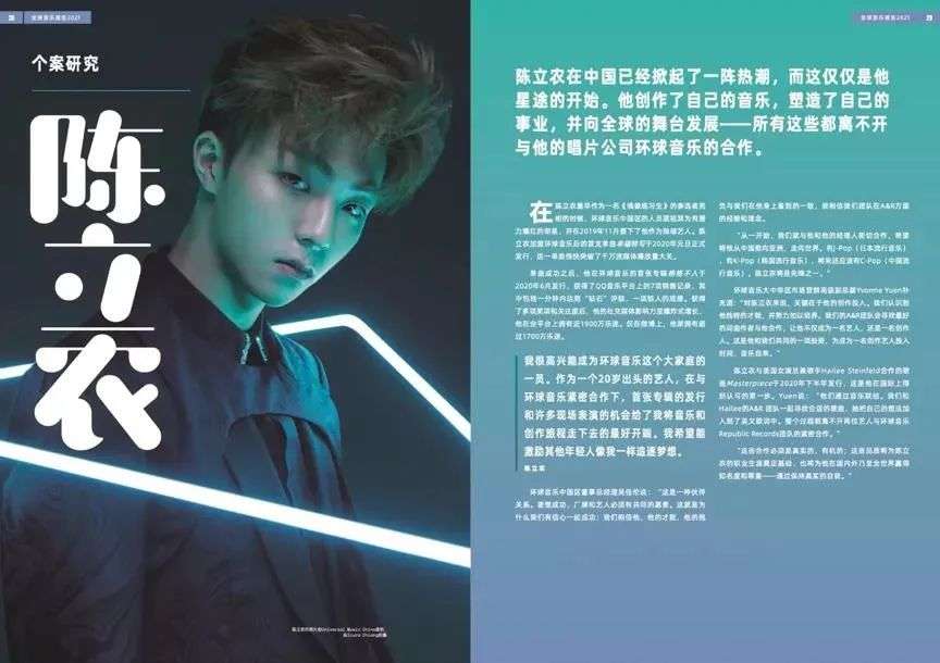 中国音乐市场在2018年首次杀进世界前十的第二年,袁娅维成为出现在IFPI报告中的首位中国歌手;在2020年的报告中,陈立农进入案例观察,既值得欣喜感叹,也是顺理成章。