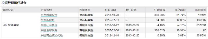 2007年2月6日-2015年12月31日他管理的兴全全球视野,任职回报为360.14%,年化回报率为18.91%。