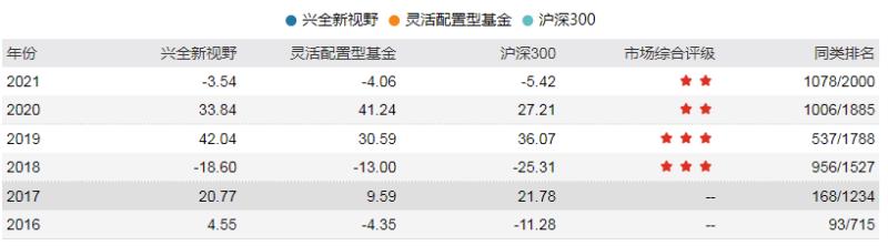 反观他的另一只基金,在2015年牛市高点发行的兴全新视野,经历了2015年的股灾、2016年的熔断、2018年的去杠杆,收益就逊色不少,截至2021年3月24日累计回报率为94.88%,年化回报率为12.33%。基金近两年的业绩更是在同类排名中处于中等水平。