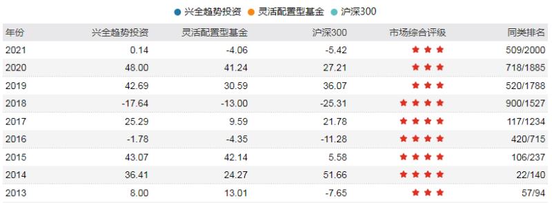 他所管理的兴全趋势,延续了前任基金经理王晓明的风格,那就是:熊市里面跌得比别人少一点,牛市里面能够跟上别人,追求的是在长的时间里,能够给持有人带来回报。