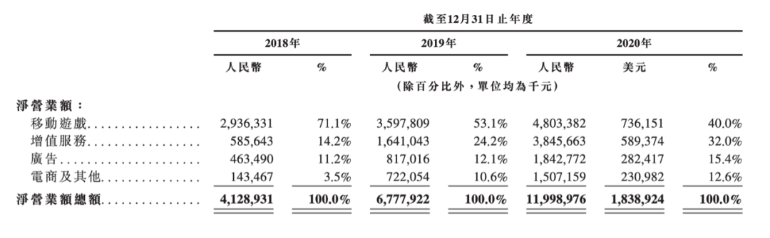 其中,游戏收入首次少于直播和增值服务收入,同比增长30%至11.3亿元;直播和增值业务同比增长118%至12.5亿元;广告业务连续7个季度同比加速增长,达7.2亿元,增速高达149%;电商业务也同比增长168%至7.4亿元。