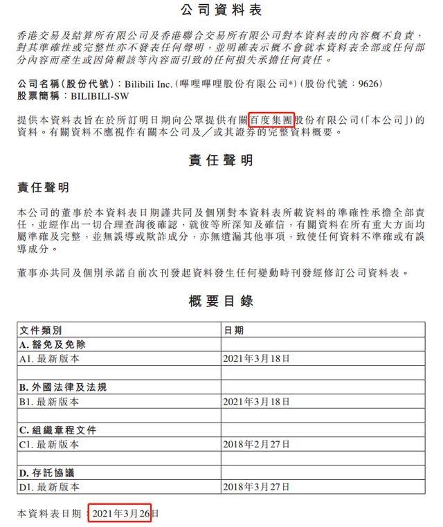 3月26日,哔哩哔哩(简称“B站”)在港交所披露最新公司资料表。令人咋舌的是,在公司名字处竟然将“哔哩哔哩”写成“百度集团”,这简直是不可原谅的大乌龙。