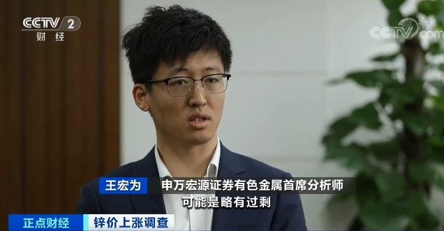 申万宏源证券有色金属首席分析师 王宏为:今年整体的锌的供需关系可能略有过剩或者小幅过剩的状态,价格在涨,锌的库存水平在上升,所以对于未来锌的价格判断应该是合理的区间振荡,大致判断在1.9万/吨到2.3万/吨,目前2.1万/吨是相对比较合理的位置。