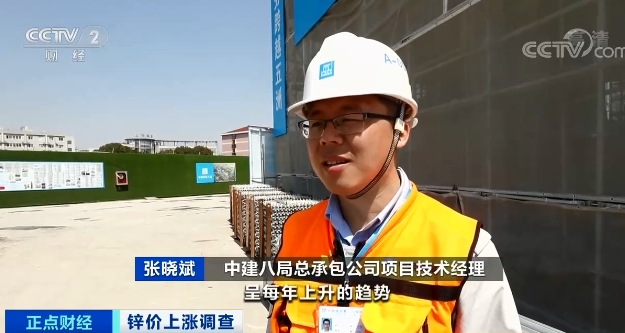 中建八局总承包公司项目技术经理 张晓斌:镀锌材料在我们现场的使用占比呈每年上升的趋势,我们下半年还有将近500多吨的镀锌材料要进场。