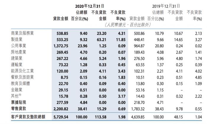 从不良分布行业来看,制造业不良贷款大幅增加,不良率由2019年末的3.27%升至11.85%。