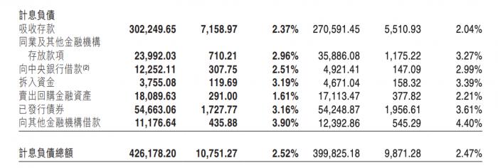 2020年江西银行生息资产中占比较大的发放贷款、金融投资、买入返售金融资产的平均年化收益率均较2019年下行,分别为5.39%、4.68%、1.65%。而利息支出中占比较大的吸收存款平均年化成本率上行至2.37%,增加0.33个百分点。