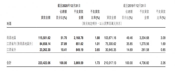此外,从地区来看,该行省外贷款不良率大幅提升至3.65%。该行南昌地区、江西省(除南昌地区外)、江西省外贷款占比分别为51.70%、37.89%、10.41%。